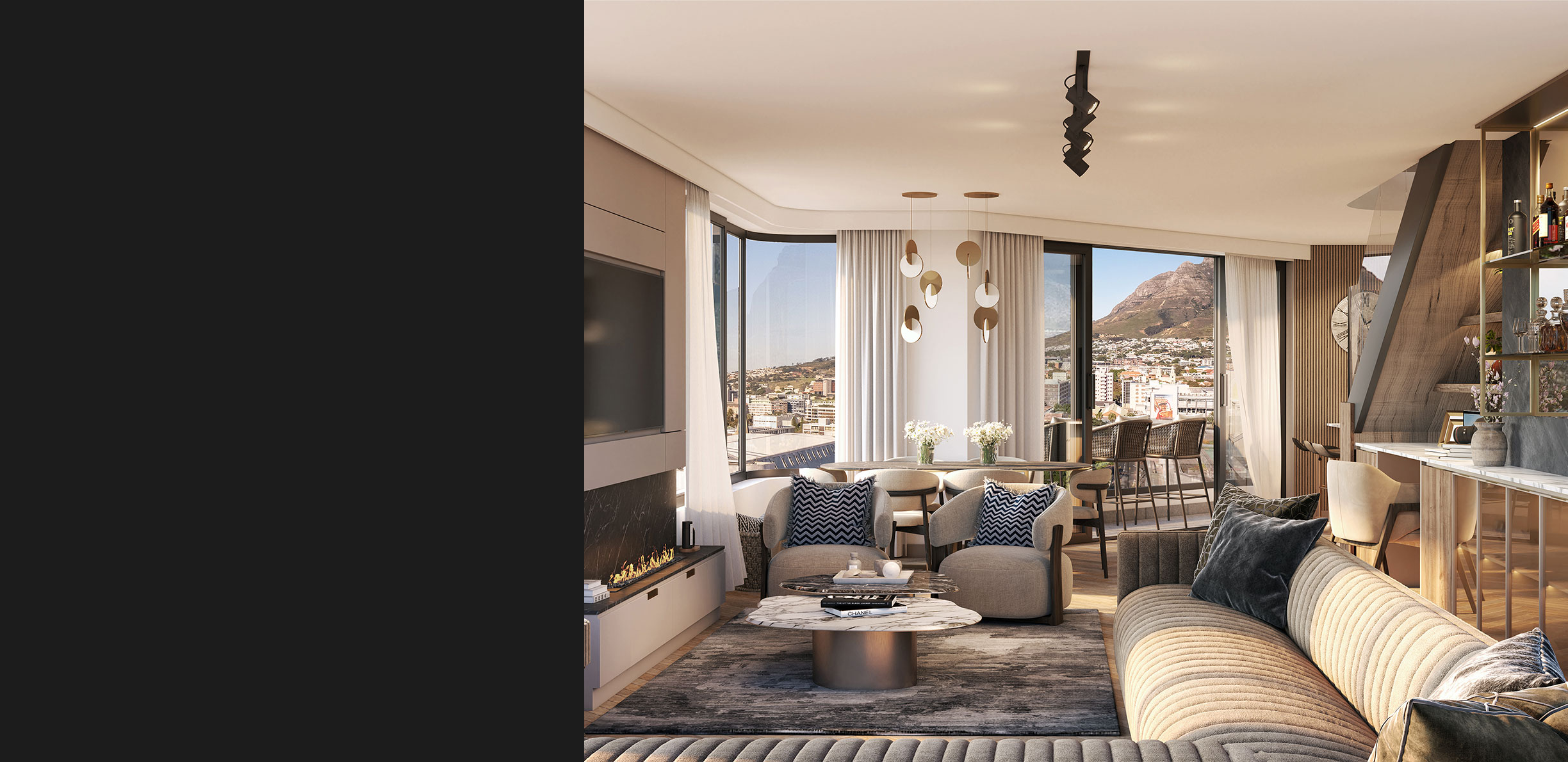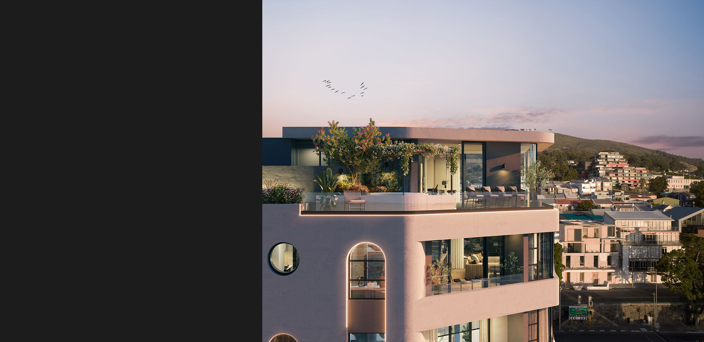 On the top floor of Alto Livello, you’ll discover four remarkable penthouses; two with captivating panoramic sea views and two with an alluring vista of the majestic Signal Hill. In addition, a selection of duplex garden apartments complements the collection, alongside a blend of lavish one, two and three-bedroom apartments, each artfully appointed for comfort and elegant style.